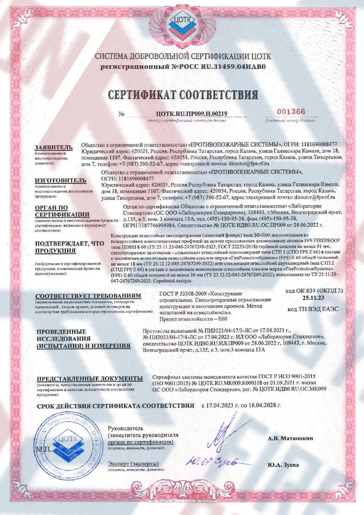 Компания «Fire Protection Systems» предлагает полный цикл услуг по проектированию, изготовлению и монтажу противопожарных алюминиевых зенитных фонарей.